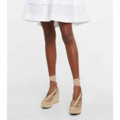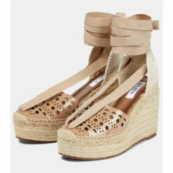 Espadrille wedges are the ultimate summer footwear and this laser-cut iteration from Alaïa is a particularly fashion-forward choice. Complete with grosgrain ribbons, they have patent leather uppers in the iconic Vienne motif in neutral beige.