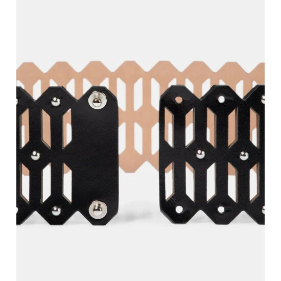 Look to Alaïa for eye-catching waist-cinchers accessories, like this geometric laser-cut belt. Embellished with silver-tone studs, it’s made from smooth calfskin leather and arrives in wear-with-everything black. Match yours to the label’s roster of perforated bags.