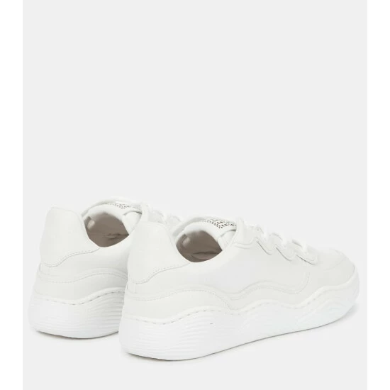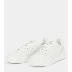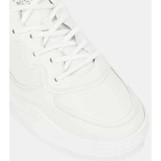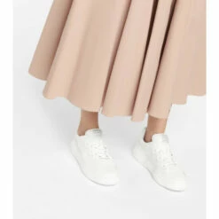 These elegant white sneakers are an instantly recognizable Alaïa design. Made from supple calfskin leather, they work scalloped ridging along the soles and laser-cut perforations at the tongues that speak to hallmark motifs of the house. Match yours to the label’s totes for I’m-with-the-brand appeal.