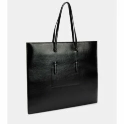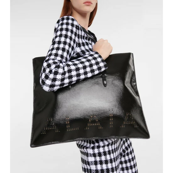 This slim tote from Alaïa was made in Italy from grained black leather with a suede interior, and is finished with a laser-cut rendition of the brand’s logo on the front.