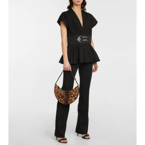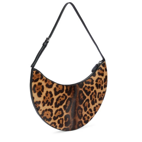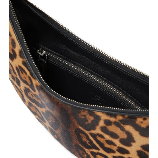 Alaïa’s Le Demi-Lune shoulder bag is so named due its distinctive silhouette. Made from leopard-printed pony hair, it hangs from an adjustable shoulder strap and features an internal zipped pocket.