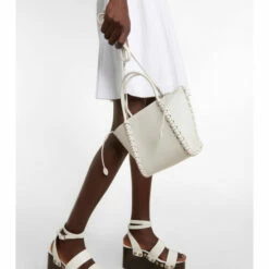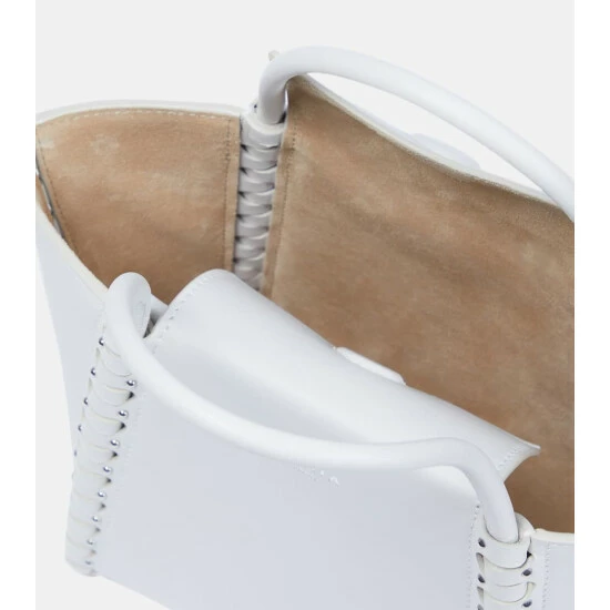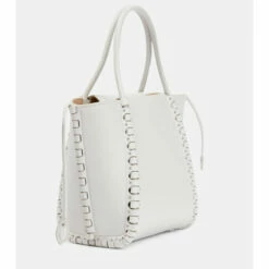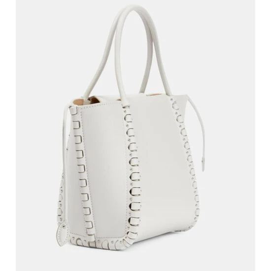 Alaïa’s Le Hinge Mini tote bag is aptly named for the illusion made by silver-toned stud-embellishments and leather handles looping through from one side to the other. This spacious design features a magnetic closure and side ties.