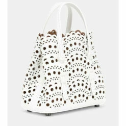 Perforated with Alaïa’s Vienne Wave motif, the Mina 16 Micro tote is an elegant everyday essential. Made from calf leather, it’s framed by a scalloped trim that expands at the sides for practical perfection.