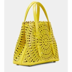 Alaïa’s Le Mina 20 Mini tote is characterized by the label’s signature laser-cut New Vienne motifs. Made from smooth yellow leather with laced-though top handles, it’s a design that will effortlessly segue into any edit.