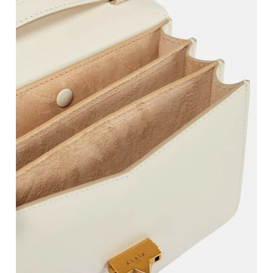 This timeless crossbody bag from Alaïa is crafted from smooth white leather, features accordion-style inner pockets and is and topped with golden hardware.