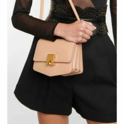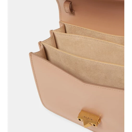 This timeless crossbody bag from Alaïa is crafted from rose pink leather, features accordion-style inner pockets and is and topped with golden hardware.