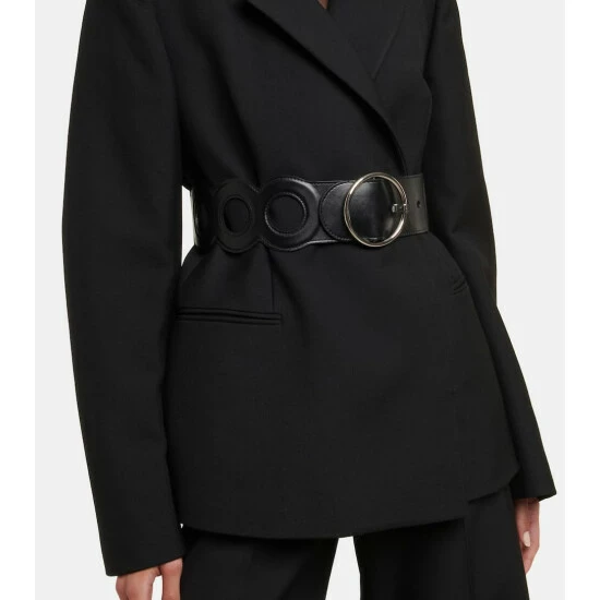 When shopping for a statement belt, always look to Alaïa. This black leather design features signature cutout detailing and a silver buckle.