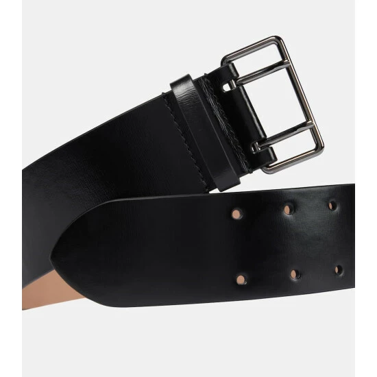 With a wide silhouette and silver-tone buckle hardware, this black leather belt from Alaïa will cinch looks on a modern note.