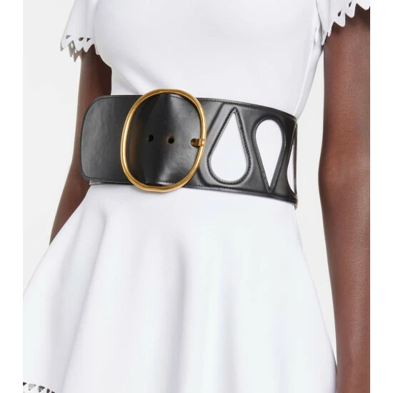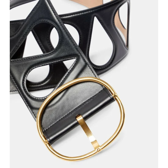 When shopping for a statement belt, always look to Alaïa. This black leather design features signature cutout detailing and a golden buckle.