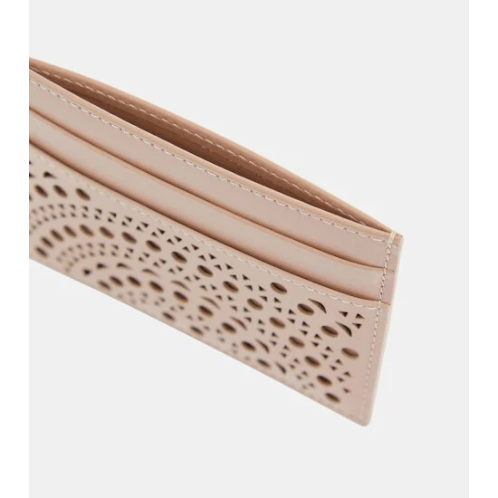 This beautifully crafted card holder features Alaïa ‘s signature Vienne Vague laser-cut motif. It’s made from beige leather and has five slots to hold your cards.
