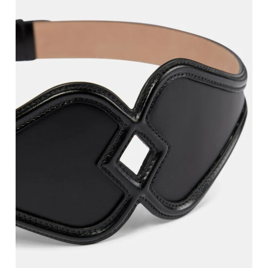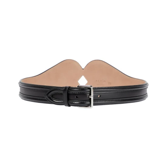 Alaïa’s corset belts are something of a house signature, and this style has heart-shaped tips that meet at the center. Made from leather, it has a buckle fastening.