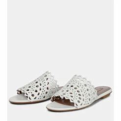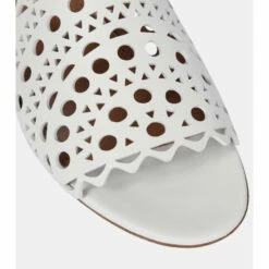 Iconic laser-cut ‘Vienne’ motifs and scalloped edges easily mark these white sandals as the work of Alaïa. Made in Italy from buttery soft lambskin, this iconic pair features a simple wide strap, flat sole and subtle lift at the heel. Slip yours on with floating midi dresses for an effortless transition from day to night.