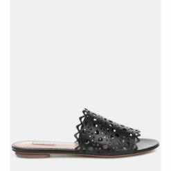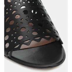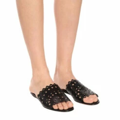Iconic laser-cut ‘Vienne’ motifs and scalloped edges easily mark these black sandals as the work of Alaïa. Made in Italy from buttery soft lambskin, this iconic pair features a simple wide strap, flat sole and subtle lift at the heel. Slip yours on with floating midi dresses for an effortless transition from day to night.