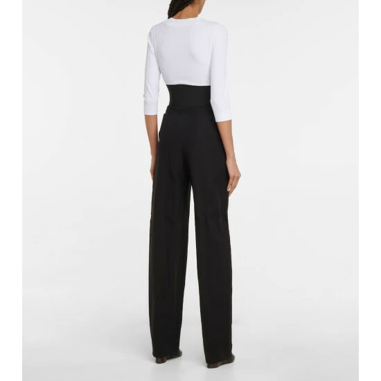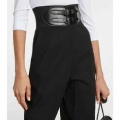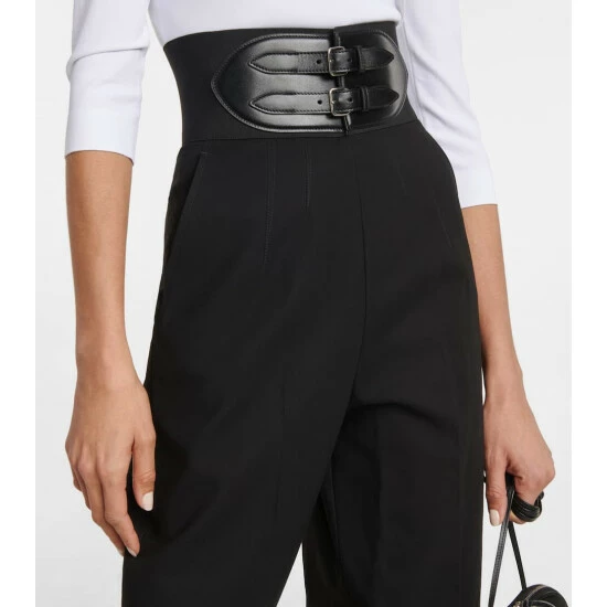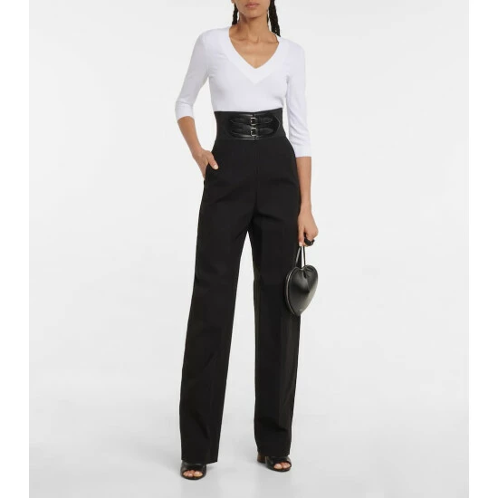These flattering straight pants from Alaïa sit high on the waist for an elongating effect. They’re made from cotton canvas and accented with leather buckled straps.