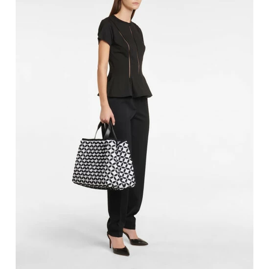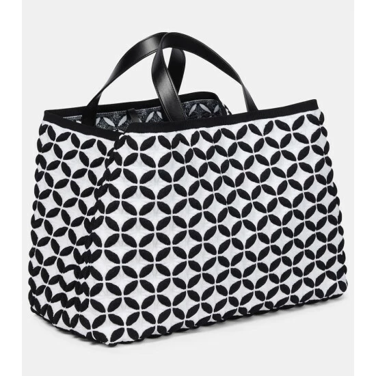 This tote from Alaïa brings together the maison’s love of knit jacquard fabrics with elevated, essential accessories. The double-handle design is trimmed in black leather – to complement its monochrome body – and comes in an open-top, boxy shape that’s perfect for storing the everyday essentials.