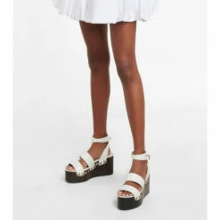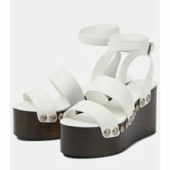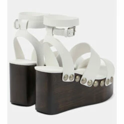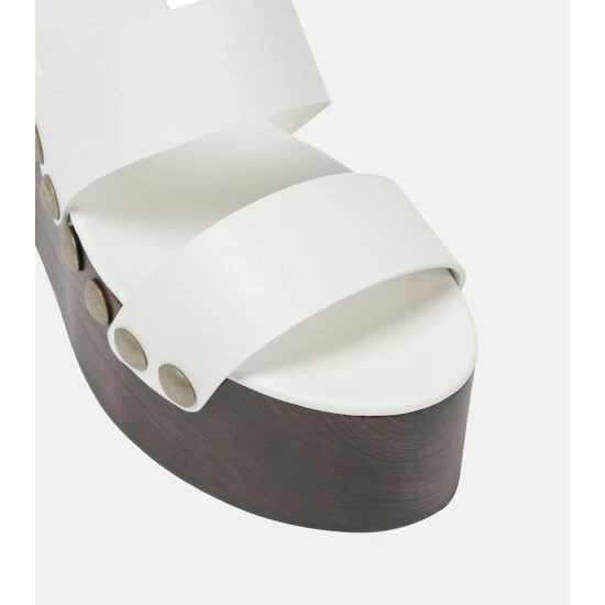 Inspired by classic clogs, these wedge sandals from Alaïa are set atop wooden soles. Featuring smooth leather straps and large silver-tone studs, they secure with buckled straps around the ankles.