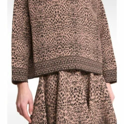 Make statement styling an everyday affair with this leopard-jacquard sweater from Alaïa. This brown design has an elegant bateau neckline and a boxy cocoon cut, resulting in a look that subtly recalls the ’60s. Brand devotees will appreciate the intricate pattern play at the cuffs and hem, inspired by the house’s hallmark laser-cutting.