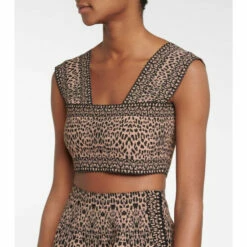 Master day-to-dark dressing in daring fashion with this leopard-printed crop top by Alaïa. Made from a lightweight stretch fabric, the beige and black design features wide shoulder straps. For a coordinated look, wear yours with the matching miniskirt.