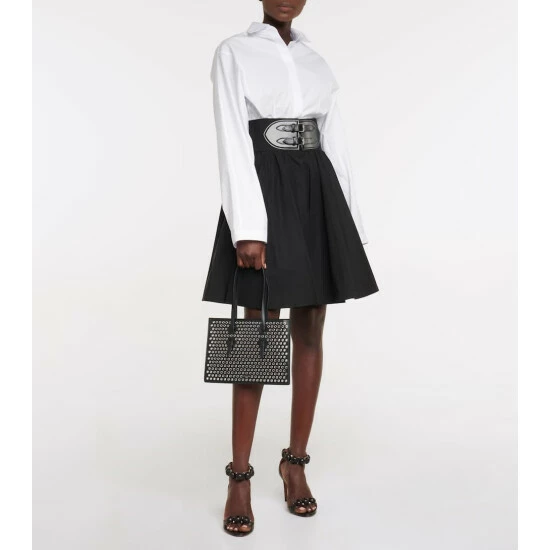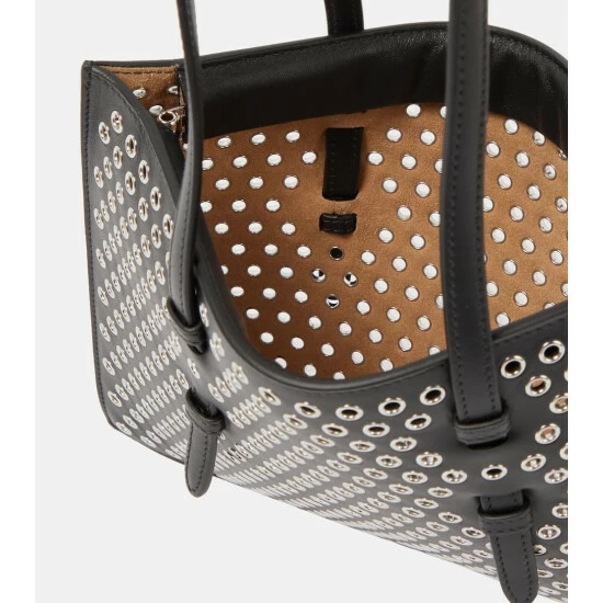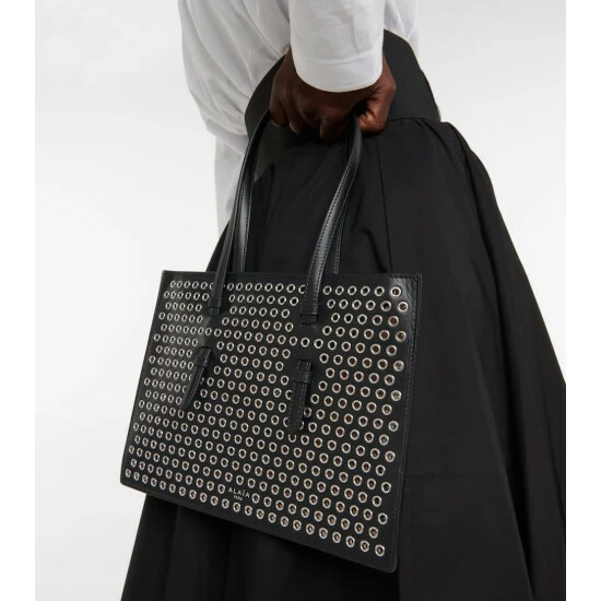 Alaïa presents a tough-luxe take on the everyday tote with the Mina Small bag. Made from calfskin, this slim-profiled design is punctuated with open studs that will reveal glimpses of your essentials.