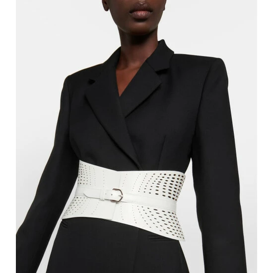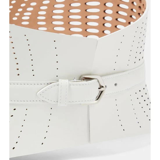 Let Alaïa’s luxurious approach to design permeate your wardrobe by investing in unique accessories such as the Neo corset belt. Made in Italy from white calf leather that’s perforated to enhance your silhouette.