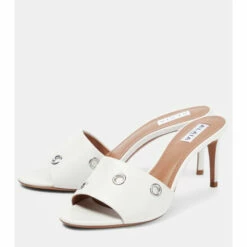 The Oeillets sandals showcase Alaïa’s architecturally informed vision. This heeled lambskin style is embellished with maxi eyelet detailing that nods to the house’s penchant for industrial-infused styling.