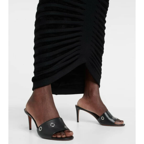 The Oeillets sandals showcase Alaïa’s architecturally informed vision. This heeled lambskin style is embellished with maxi eyelet detailing that nods to the house’s penchant for industrial-infused styling.