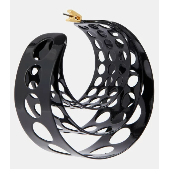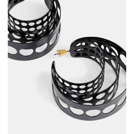 These layered hoop earrings from Alaïa are made in Italy from black brass and feature the brand’s signature openwork laser-cut detailing.