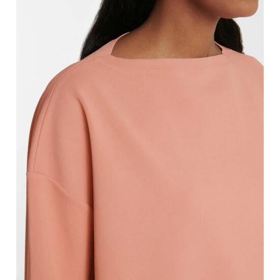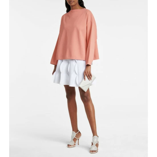 When feeling laid-back but want to look put-together, choose low-key yet elegant pieces like this Alaïa sweater. Made from a lightweight stretch knit, this oversized style comes in a sweet pale-pink hue.
