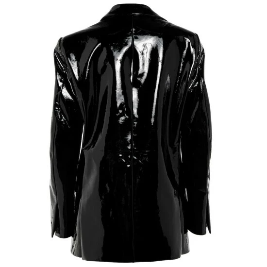 Made from leather with a shiny patent finish, this jacket from Alaïa has a zipped front.