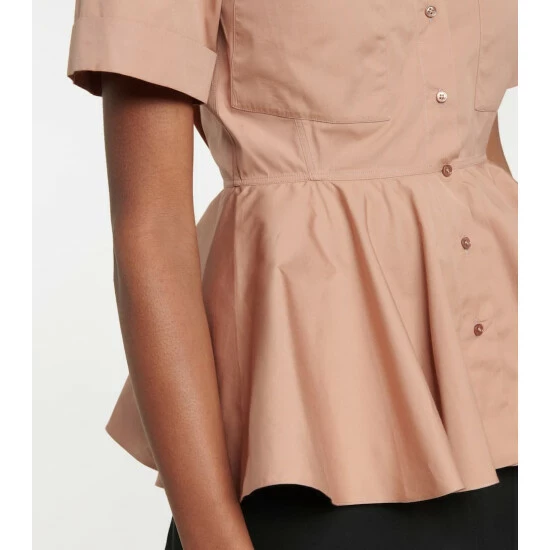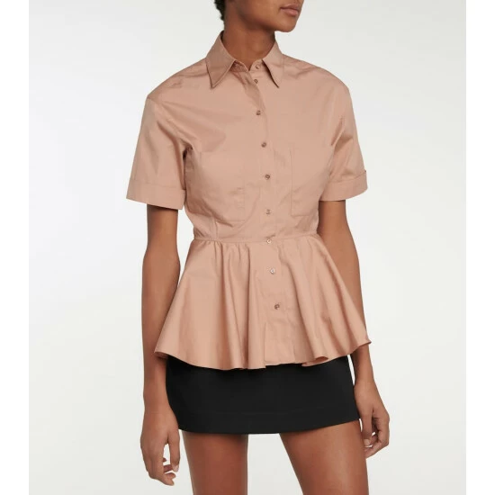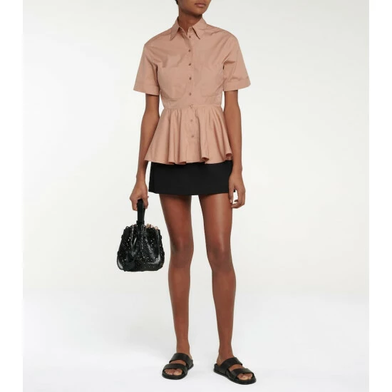 Alaïa revels in creating staple pieces of distinction, like this peplum-waisted shirt. It’s made from cotton poplin in beige – one of the house’s tones of choice – in a smart silhouette that’s further accentuated by the point collar and turn-up sleeves. Style it with slim-fit pants to keep its features in focus.