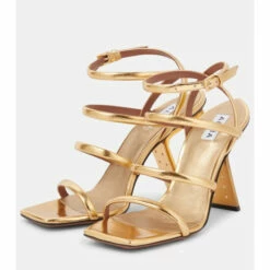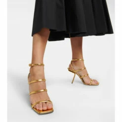 Stand tall in the sculptural vision of Alaïa with the Perfo sandals. This perforated style highlights the house’s affinity for architectural design with slanted slender heels that curve on the underside of the shoe.
