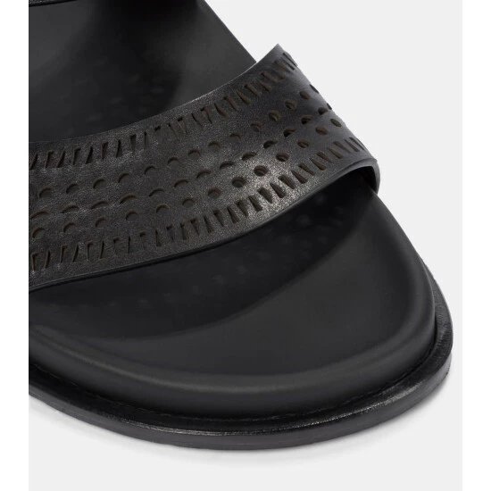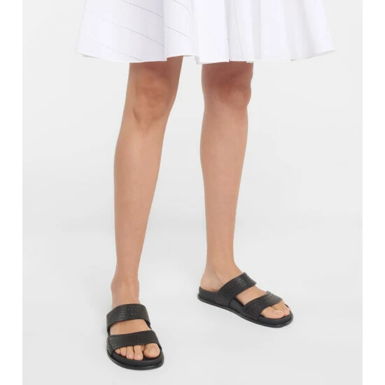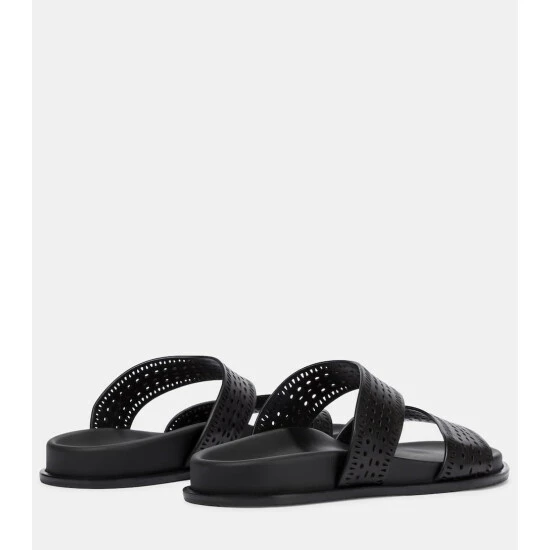 Perforated leather is an Alaïa signature, and one that instantly elevates these black slides. Crafted from supple lamb leather, they’re a slip-on style with round open toes and comfortable padded insoles. Style with the label’s fit-and-flare dresses.