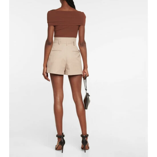 Clean lines lend a sophisticated touch to your ensembles with these high-rise shorts from Alaïa. Falling to mid-thigh length, they have a tailored silhouette and structured pleats.