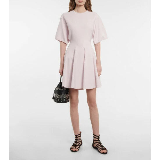 Turn to this minidress from Alaïa on summery soirées. It’s cut to a feminine silhouette with a typically cinched waist that’s framed by voluminous short sleeves and a pleated skirt.