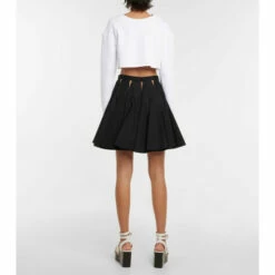 Deceptively minimal, this miniskirt from Alaïa has pointed cutouts lining its high waist. The cotton design is fully pleated and has an A-line silhouette.
