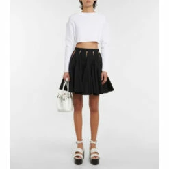 Deceptively minimal, this miniskirt from Alaïa has pointed cutouts lining its high waist. The cotton design is fully pleated and has an A-line silhouette.