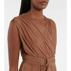 Embrace a Grecian silhouette with this slinky plissé midi dress from Alaïa. Lending itself to both casual and occasionwear styling, it’s made from lightweight fabric with a sensual low-back and D-ring sash belt.