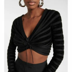 Known for flattering sculptural cuts and high-quality craftsmanship, the Parisian Maison Alaïa creates elegant styles for the modern woman. Case in point is this ruched crop top, which is made with chenille yarn and stretchy viscose.