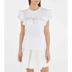 This white top from Alaïa is a twist on a classic T-shirt. It’s made from soft cotton jersey and trimmed with tiered of ruffles at the sleeves and bodice.