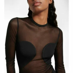 This alluring bodysuit from Alaïa is made silk crêpe, and is shaped with long sleeves and partial coverage.