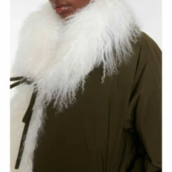 Made from technical nylon, this coat from Alaïa has a voluminous shearling lining and a self-tie waist.