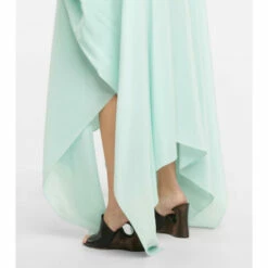 Minimal in design, yet maximal in elegance, this kaftan-inspired maxi dress from Alaïa is cut from pure, lustrous silk. This relaxed design features a gorgeously fluid, asymmetric drape and silver-toned, metal cuffs.