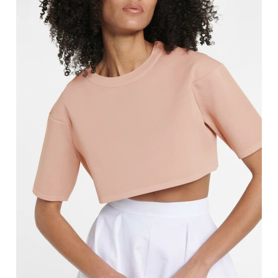 This pale pink crop top from Alaïa is made from the label’s signature piqué jersey – a dense, stretch-rich fabric that flatters the figure. A versatile layering piece, style it under a blazer for formal affairs.