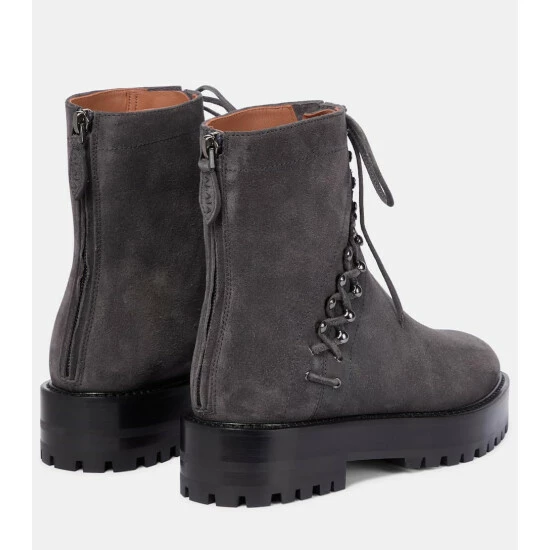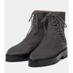 Take your shoe edit in a tough-luxe direction with these gray ankle boots from Alaïa. The pair has been expertly crafted in Italy from smooth suede. An intricate diagonal lace-up enriches its simple silhouette, while the back zip closure allows for effortless on-off wear. Style yours with everything from sweeping midi dresses to sharp suiting separates.