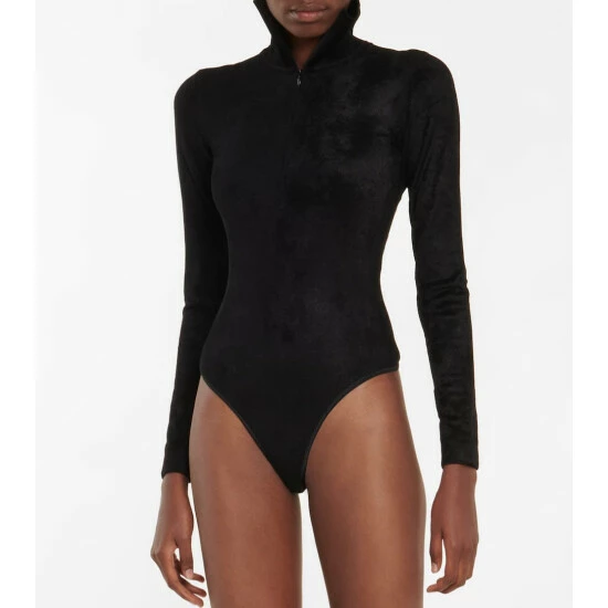 Made from a tactile fabric, this bodysuit from Alaïa has a turtleneck and a zipped front.