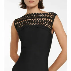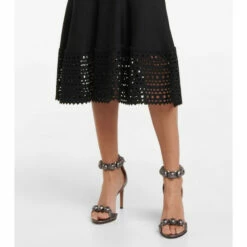 Alaïa’s iconic Vienne motif is an openwork laser-cut pattern that’s inspired by lace and architecture. This midi dress is made from figure-hugging fabric that flares to a calf-grazing fishtail hemline.
