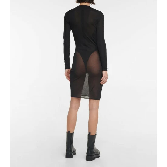 Known for flattering sculptural cuts and high-quality craftsmanship, the Parisian Maison Alaïa creates elegant styles for the modern woman. This minidress is made from a soft knitted voile with a sheer look.