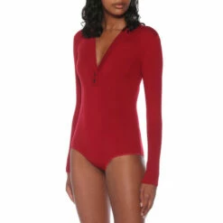 Power dressing starts with strong foundationwear, like this dark red bodysuit from Alaïa. You’ll love how the stretch wool-blend knit compresses and sculpts the figure in the most flattering way. It has a deep V neckline with two buttons at the base of the placket. Wear yours under suiting separates for a confident look.