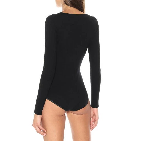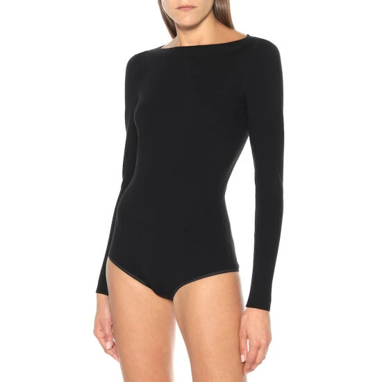 Deceptively simple in design, there is so much to love about this black bodysuit from Alaïa. Made in a fine-knit that can be dressed up or down, it has a flattering boat neck and long sleeves with contrasting cuffs. Perfect for layering from season to season, the wool-blend speaks to its comfort, breathability and warmth.