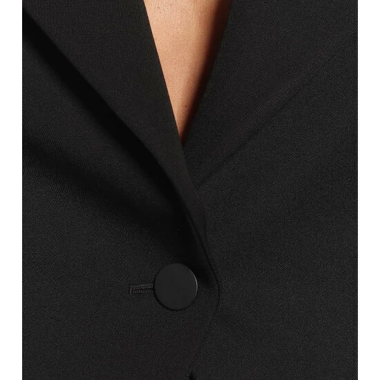 This black blazer from Alaïa is defined by cut-out paneling that draws attention to the waist, creating a subtle tailcoat effect. Made in Italy from wool twill, it’s tailored to a figure-skimming silhouette with lightly padded shoulders and peak lapels. A smooth lining ensures it will layer bulk-free over shirting – though our editors suggest wearing it solo for a more daring evening look. Wear yours with matching pants, in lieu of an LBD, for your next special event.